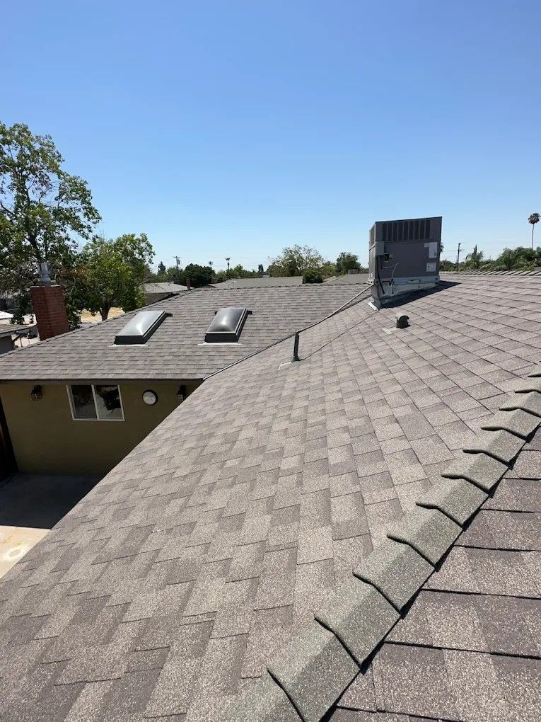 The crew inspects your roof to identify damage, measure remaining life, and determine whether repair or replacement is the better option. For repairs, damaged sections are removed and replaced with matching materials, and flashing is sealed around vents, chimneys, and skylights. For full replacements, old roofing is stripped down to the decking, damaged boards are replaced, and new underlayment and shingles are installed in overlapping rows that shed water away from the structure. The work restores the roof's ability to protect your home from rain, sun, and temperature extremes common in the Central Valley.